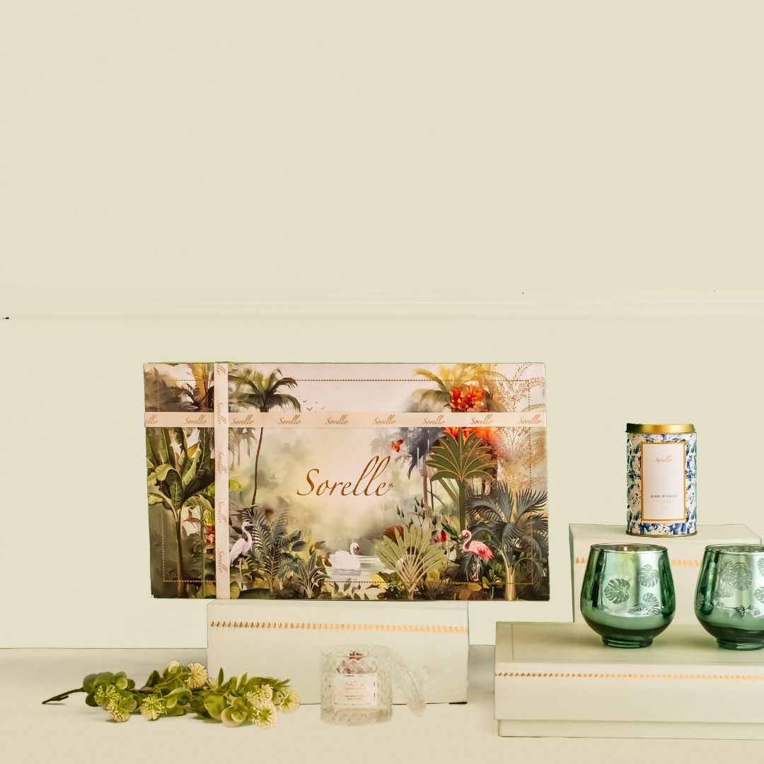 Inspired by the beauty of blossoms and the serenity of nature, the Zahara Box celebrates life in full bloom. Designed with lush botanical artwork and soft, radiant hues, it captures the essence of elegance and renewal. Every detail, from its floral-inspired illustrations to its signature Sorelle ribbon - reflects a story of grace, vibrance, and celebration. To place an order, inquire about pricing, or learn more about the Zahara Box, please reach out to us via DM on @SorelleSL or contact us at +91 95014 39529 - prices are available upon request.